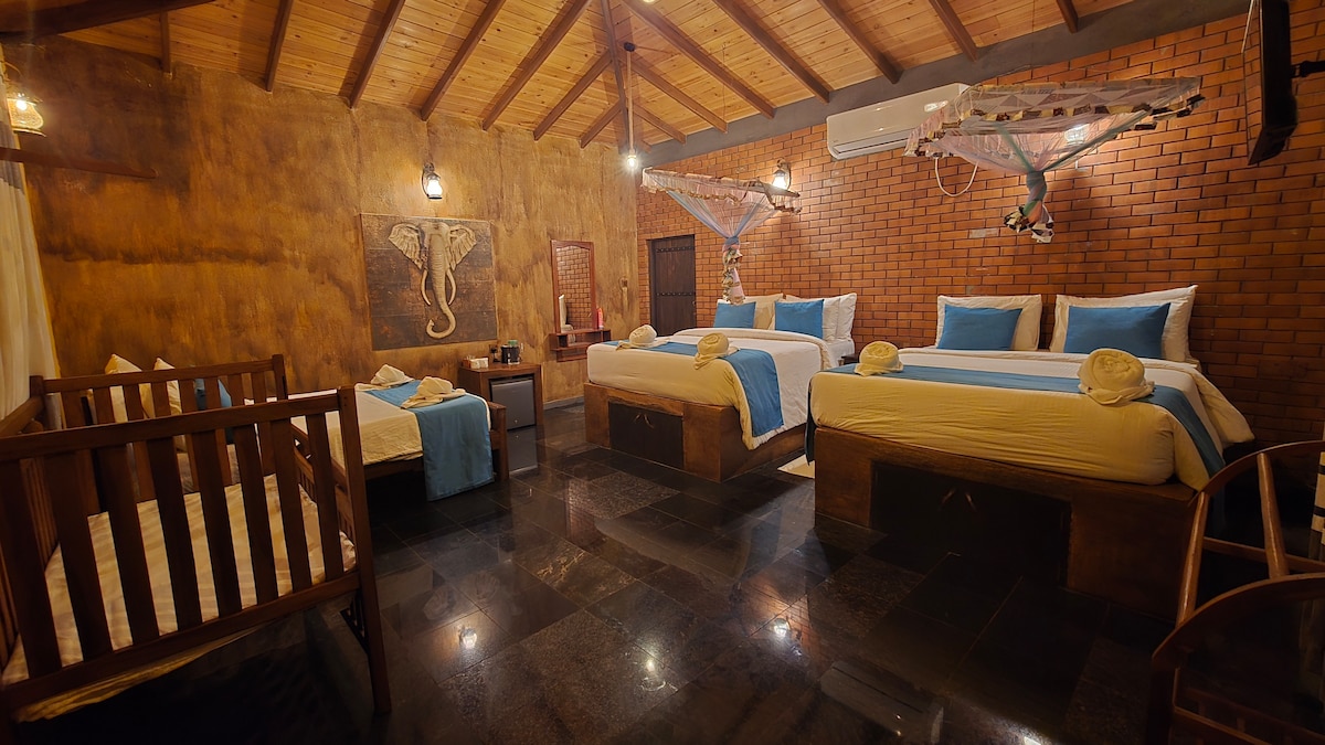 Wild Ele 243 is a beautiful four-bedroom river front villa for 8. It is nestled ten minutes from the entrance to the majestic Wilpattu National Safari Park in Sri Lanka. Where elephants, leopards, and other fascinating wildlife roam freely in the most beautiful jungle. Situated amidst the tranquil beauty of the village, our property boasts a serene riverfront setting offering guests a unique opportunity to immerse themselves in nature's wonders.