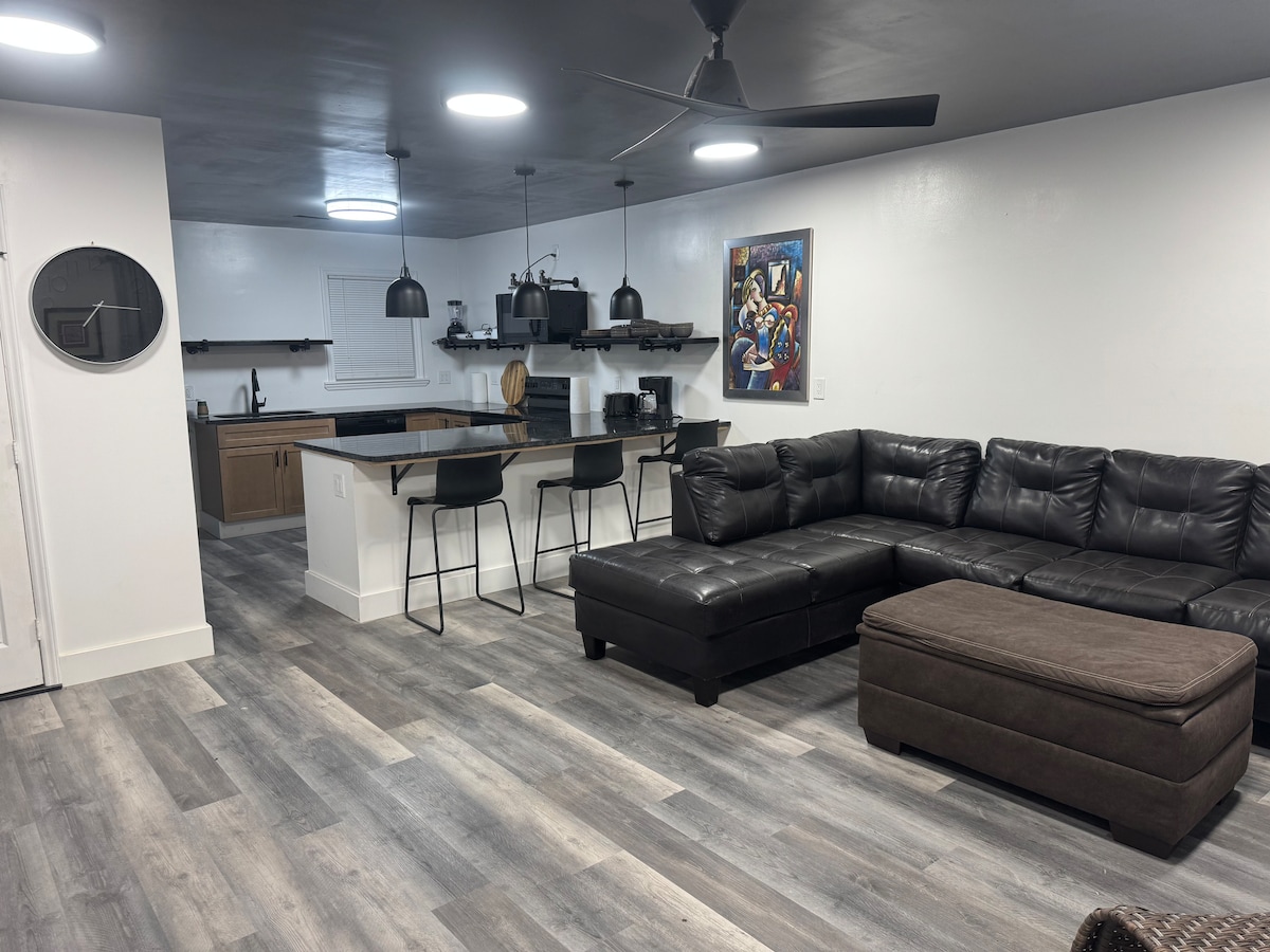 नई जीर्णोद्धार की गई पहली मंज़िल का डुप्लेक्स विशाल आवास प्रदान करता है - 1 बेडरूम जिसमें क्वीन बेड है, और लिविंग रूम में पूरे आकार का पुलआउट सोफ़ा है। 1,800 वर्ग फ़ुट की इस यूनिट में एक निजी बेडरूम, 1.5 बाथरूम, फ़ुल किचन, लिविंग रूम, छोटे ऑफ़िस एरिया, आउटडोर डेक, वॉशर/ड्रायर और साइट पार्किंग है। प्रॉपर्टी साप्ताहिक किसान बाज़ार से 2 ब्लॉक की दूरी पर स्थित है और DPAC, रेस्तरां और बार तक पैदल दूरी पर है। एक विशाल और पालतू जानवरों के लिए सुरक्षित बाड़ वाला 2000 वर्गफ़ुट का डॉग यार्ड है।