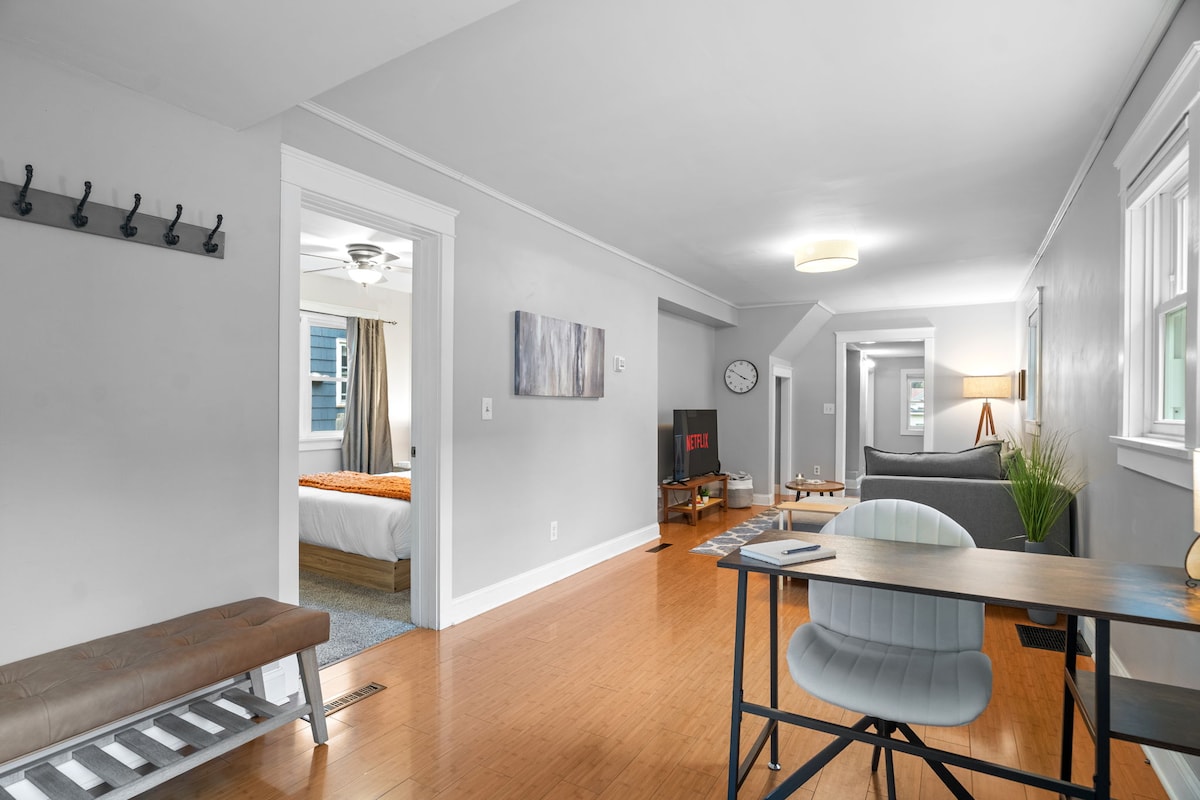 650 वर्ग फ़ुट के इस बेसमेंट रत्न को पैदल चलने लायक इलाके में रखा गया है। आपके पास अपना खुद का प्रवेशद्वार होगा, एक मुफ़्त पार्किंग की जगह होगी, साथ ही एक बड़ा पिछवाड़ा भी होगा, जहाँ आपका पिल्ला अपने पैरों को फैला सकता है। सुइट के ऊपर एक निजी टैटू स्टूडियो है — आपको सोमवार से शुक्रवार (सुबह 10 बजे से शाम 5 बजे तक) के दौरान थोड़ा हल्का पैदल ट्रैफ़िक सुनाई दे सकता है, लेकिन यह खुशी से शांत है। हमारे लम्बे दोस्तों के लिए ध्यान दें: छतें 6 फ़ुट 10 इंच ऊँची हैं और कुछ आरामदायक जगहें 6 फ़ुट पर हैं।