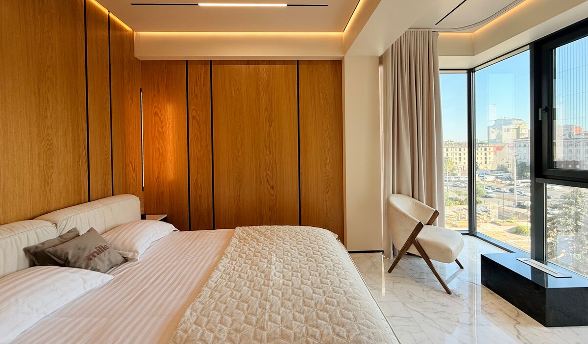 Relaxeaz─Г-te ├оntr-un apartament elegant ├оn inima Chi╚Щin─Гului, cu finisaje din marmur─Г ╚Щi lemn natural. Te vei bucura de o saltea premium Vi-Spring Bedstead, o cad─Г spa╚Ыioas─Г ╚Щi un balcon cu ╚Щemineu decorativ. Apartamentul are perdele cu telecomand─Г ╚Щi espressor cu cafea pe boabe Blocul beneficiaz─Г de recep╚Ыie ╚Щi paz─Г 24/24, oferindu-╚Ыi un plus de siguran╚Ы─Г, confort ╚Щi lini╚Щte pe durata ├оntregii ╚Щederi.