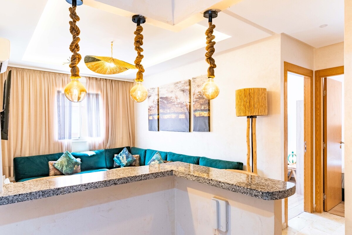 Discover Marrakech in this magnificent apartment, located in the heart of the city just 1 minute away from Carré Eden Shopping Center. This fully equipped & new space offers the perfect blend of comfort. With fast fiber optic internet and tastefully decorated interiors, you'll feel right at home. Whether you're in town for business or leisure, this central location makes it easy to explore all that Marrakech has to offer. *MOROCCAN UNMARRIED COUPLES & GUESTS ARE NOT ALLOWED**