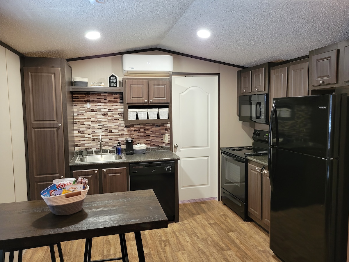 वापस लाएँ और इस शांत, स्टाइलिश जगह में आराम करें। चाहे आप परिवार से मिलने जा रहे हों, क्षेत्र में कुछ समय बिता रहे हों या बस व्यवसाय के लिए यात्रा कर रहे हों, वुड्स में हमारा आरामदायक कॉटेज आपको घर जैसा महसूस कराएगा। यह घर एक बिल्कुल नया निर्माण है जिसमें चार लोग सो सकते हैं, जिसमें दो प्राथमिक बेडरूम और दो आस - पास की जगहें हैं। आरामदायक कॉटेज में एक खुली मंजिल की योजना, पूरी तरह से सुसज्जित रसोईघर, आरामदायक लिविंग एरिया, तीन स्मार्ट टीवी, विशाल सामने का बरामदा और पिछवाड़े का फ़ायरपिट है, जो सभी एक सुरम्य जंगली लॉट पर हैं।