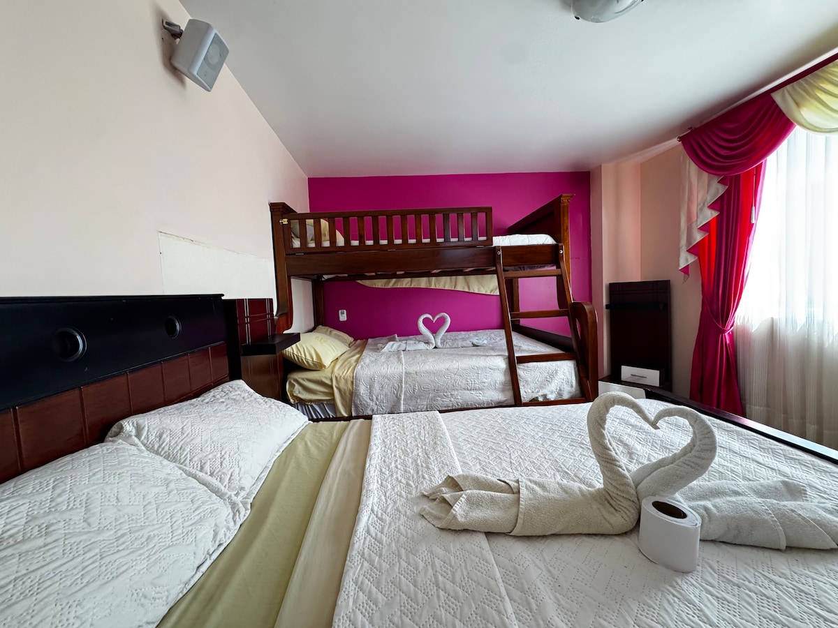 दोस्तों या परिवार के एक समूह के लिए आदर्श बनाने के लिए टीवी फ्लैट स्क्रीन वाले एक आर्थिक कमरे में गर्म पानी का टीवी केबल है हम मुख्य एवेन्यू बैंकों और दुकानों के पास रियोबाम्बा के सबसे अच्छे क्षेत्र में स्थित हैं।