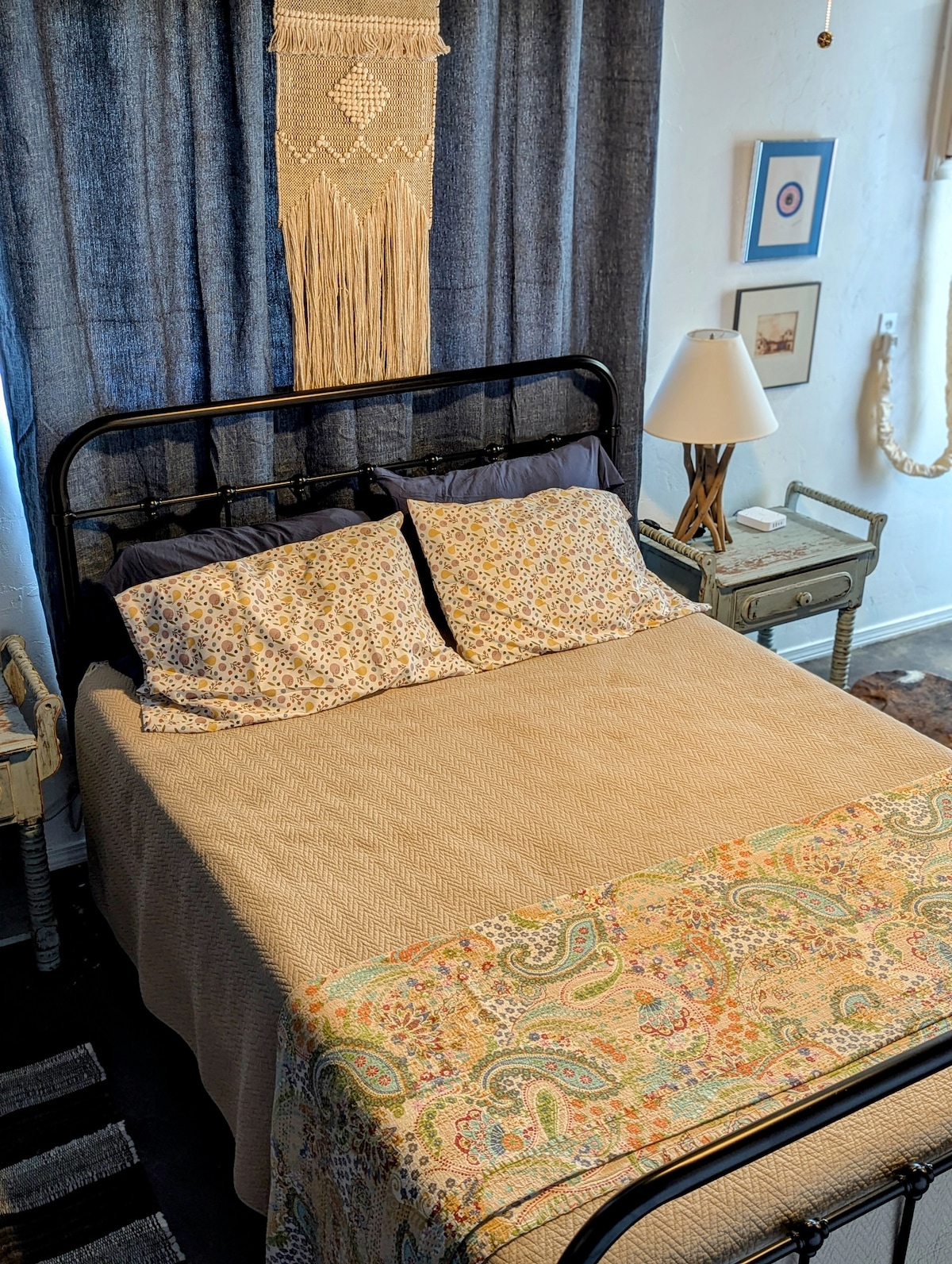 From the 1940тАЩs this building is one of the few remaining original second story residences built over a 1st story business. Downtown, this suite is walkable: coffee shops, bars, restaurants, art galleries, yoga studio. 2 blocks to Shannon Medical Center. 1 block to Performing Arts Center. 350sf for 1 or 2 people. Includes a queen bed, full bath, fridge, microwave, toaster oven. Open concept with lots of light. No living room/seating area but perfect if you're on a budget and on the go!