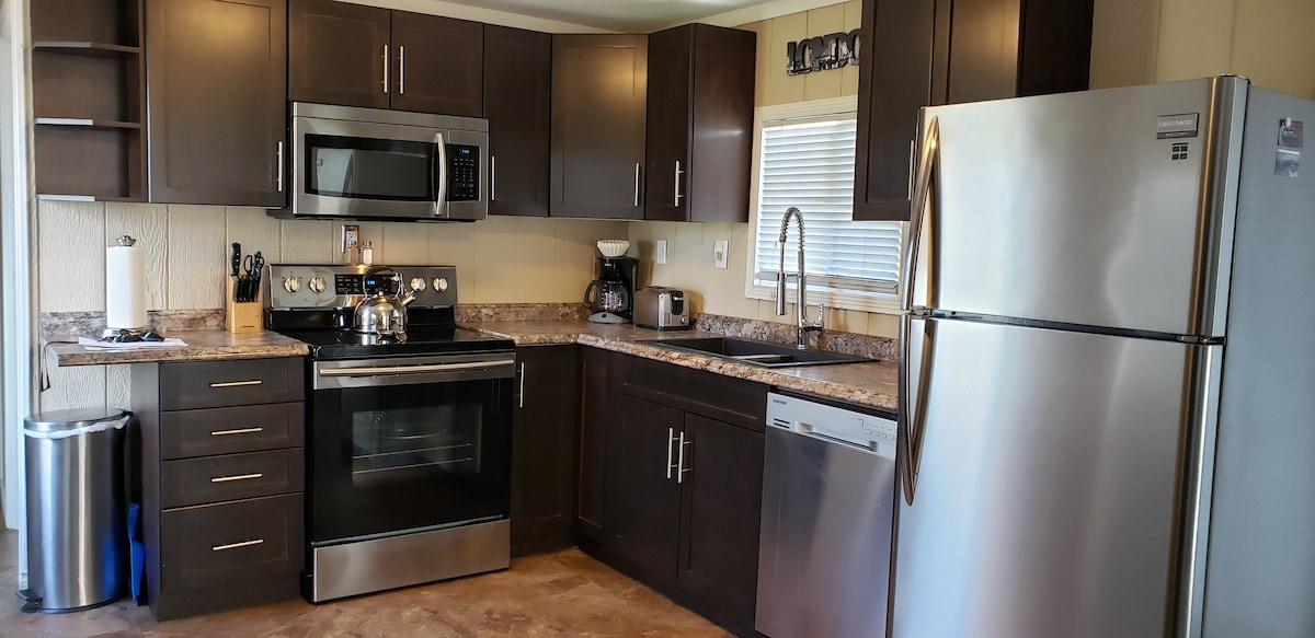 A beautiful newly built rustic cabin on a horse acreage. The cabin features 1 bedroom and 1 sleeping loft. A modern bathroom & kitchen There is a covered deck for you to sit and watch the horses.