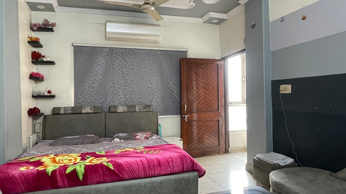 1. This fully independent house is on the second floor, offering you complete privacy and the entire space to yourself. 2. Caretaker available 24×7 for assistance, onsite or over phone, as required. 3. Enjoy superior comfort with brand-new 8-inch mattresses in every room. 4. Kitchen access for cooking is available at ₹500 per day, payable on-site. 5. Listed rate is for two guests in one room only. An extra room is available for a third or additional guest, with charges applied as per Airbnb.