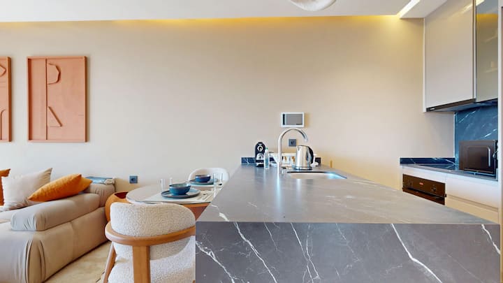 पार्क की ओर मुँह करके बना एक आधुनिक ठिकाना। छत वाले इस एक-बेडरूम वाले अपार्टमेंट में एयर-ज़ोन सिस्टम, स्मार्ट टीवी और पूरी तरह से सुसज्जित किचन है। कपल या कामकाजी यात्रा के लिए बिल्कुल सही।