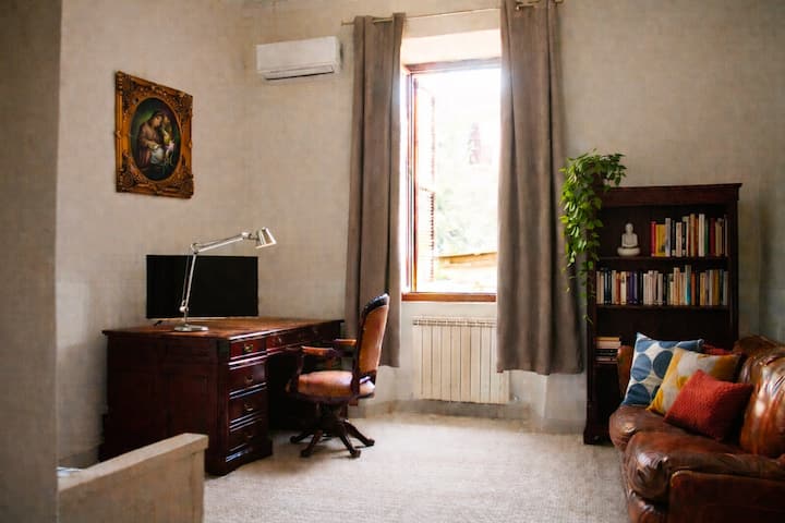 वाईफ़ाई की सुविधा वाला एक कमरा, जो काम करने के लिहाज़ से बिलकुल सही है।