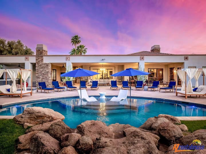जैसे ही आप सामने के दरवाजे से प्रवेश करते हैं, आपको अद्वितीय, चिकना, आधुनिक डिज़ाइन की गई खुली मंजिल योजना से उड़ा दिया जाएगा। आप तुरंत पिछवाड़े के नखलिस्तान के दृश्य को नोटिस करेंगे, बड़े पैमाने पर गायब ग्लास फिसलने वाले दरवाजों के माध्यम से। हर जगह ऊँची छतें और बड़ी खिड़कियाँ आपको हैरान कर देंगी। ऊपरी खिड़कियों से आने वाली धूप खुली जगह को रोशन कर देती है और आपको ऐसा लगेगा कि आप आखिरकार स्वर्ग में आ गए हैं। यह वह क्षण होगा जब आपको एहसास होगा कि आप वास्तव में योजना के अनुसार पैराडाइज़ वैली का पता लगाने के लिए घर से बाहर नहीं निकल सकते हैं। और आखिर में, सबसे अच्छी जगह के लिए सबसे आखिर में, बैकयार्ड! यह निजी रिज़ॉर्ट जैसा यार्ड निश्चित रूप से आपको अपने दोस्तों और परिवार को घर भेजने के लिए अंतहीन मात्रा में सेल्फ़ी लेने के लिए प्रेरित करेगा। पिछवाड़े को अलग-अलग हिस्सों में बांटा गया है, जिनमें एक बड़ी स्क्रीन वाले टीवी के बगल में बैठने की जगह, 6 लोगों के बैठने की व्यवस्था वाली एक आउटडोर डाइनिंग टेबल, बारबेक्यू और तैयारी का क्षेत्र, एक और लाउंज बैठने की जगह जहाँ से सीधे पूल, स्पा और लाउंज एरिया वाले कॉटेज तक पहुँचा जा सकता है, आपकी इच्छानुसार किसी भी काम के लिए एक बड़ा खुला घास का मैदान, एक विशाल 4-होल वाला गोल्फ पुटिंग ग्रीन, मास्टर बेडरूम के बगल में रखी रॉकिंग कुर्सियाँ और आग जलाने का क्षेत्र शामिल हैं... इतने सारे विकल्प!सुंदर एरिजोना सूर्यास्त देखते हुए घर का बना भोजन का आनंद लें...या शायद आप घर का बना मार्गरिटा पीते समय खेल देखना पसंद करेंगे। पूल के पास लिप्त और आराम करने के लंबे, कठिन दिन के बाद, आप शायद आग के गड्ढे में अपना रास्ता बना लेंगे, कुछ हंसी साझा करेंगे, सितारों को देखेंगे और अद्भुतता में डूबेंगे जो वास्तव में जादुई पिछवाड़े है।