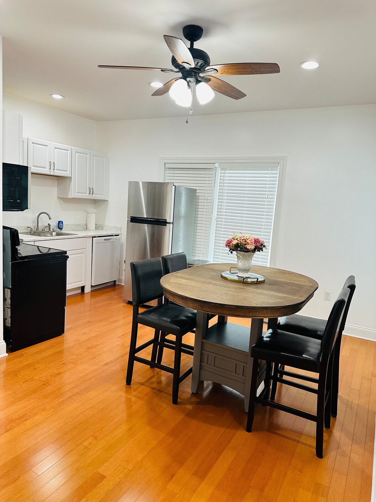 हमारा आरामदायक स्टूडियो 1 बेड/बाथ और पूर्ण रसोई है जिसमें आपको ठहरने के लिए आवश्यक हर चीज़ है और यह एकल या जोड़े की यात्रा के लिए विशाल है, अच्छी तरह से सजाया और सुसज्जित है ताकि आपका ठहरना आरामदायक हो। इसकी अपनी A/C यूनिट, 55 इंच का एक अच्छा टीवी और एक अच्छा क्वीन बेड है। यह अंतरिक्ष में एक स्व - जाँच है और 30 रातों तक 1 रात के लिए निजी है। ध्यान दें: यह पूरा घर नहीं है, यह एक स्टूडियो है जिसे दीवार से विभाजित किया गया है।
