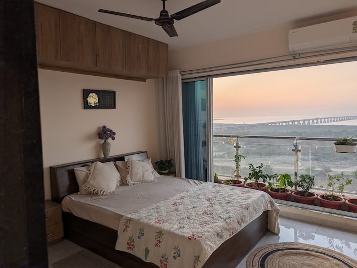 निजी बाथरूम के साथ बिग सी व्यू बेडरूम