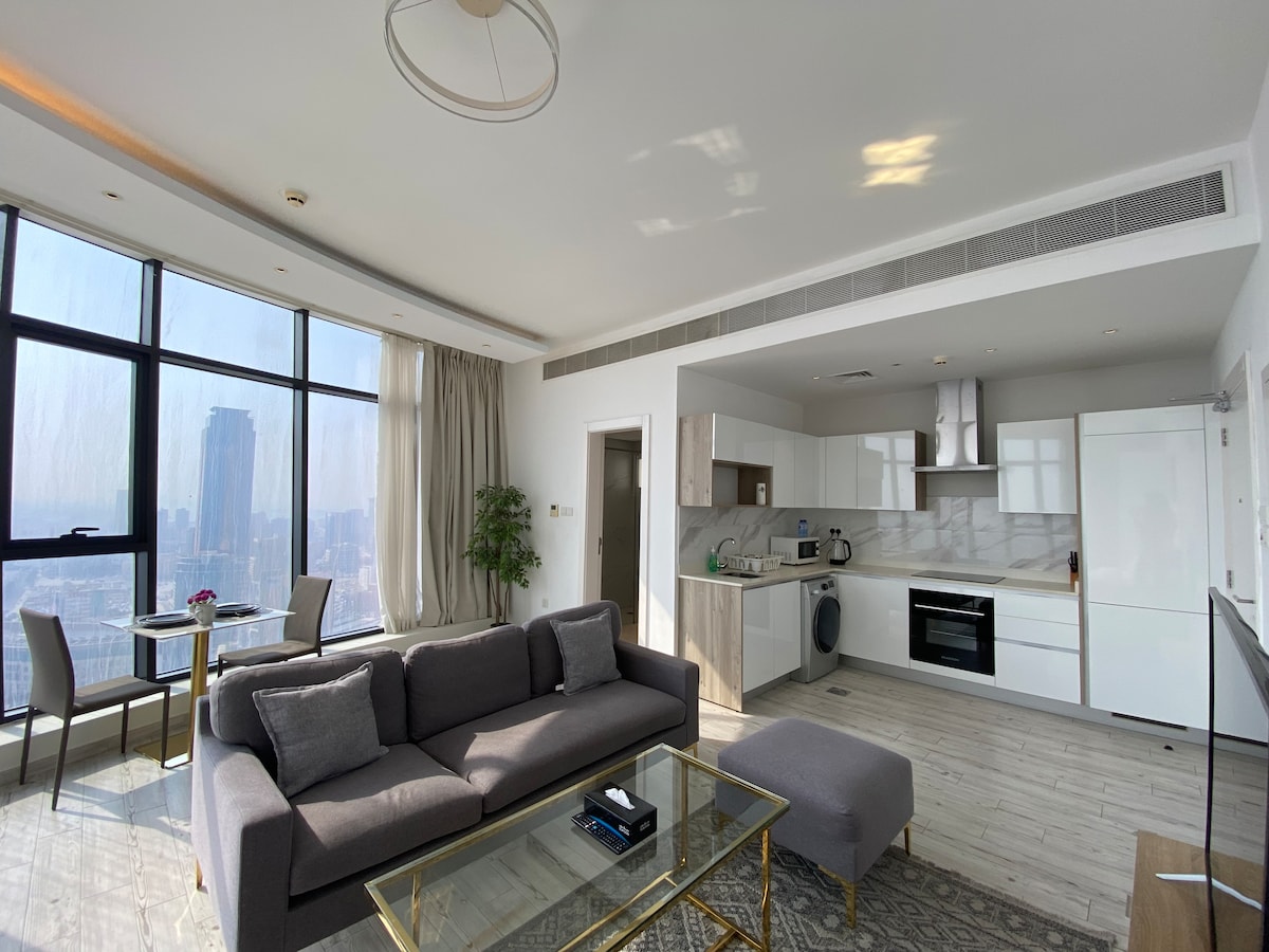 अपार्टमेंट की विशेषताएं: • समकालीन सजावट के साथ 96 वर्गमीटर का विशाल लेआउट • मनोरम नज़ारे वाली बड़ी निजी बालकनी • हाई - एंड उपकरणों के साथ पूरी तरह से सुसज्जित किचन • आलीशान किंग साइज़ बेड और पर्याप्त स्टोरेज वाला आरामदायक बेडरूम • प्रीमियम फिटिंग वाला आधुनिक बाथरूम बिल्डिंग और सुविधाएँ: • अत्याधुनिक जिम और स्विमिंग पूल • 24 घंटे, सभी दिन चालू रहने वाली सुरक्षा और दरबान सेवा • समर्पित पार्किंग की जगह • ऑन - साइट रेस्टोरेंट, कैफ़े और रिटेल आउटलेट सिटी सेंटर, सीफ़ मॉल, द एवेन्यू 5 मिनट की दूरी पर है