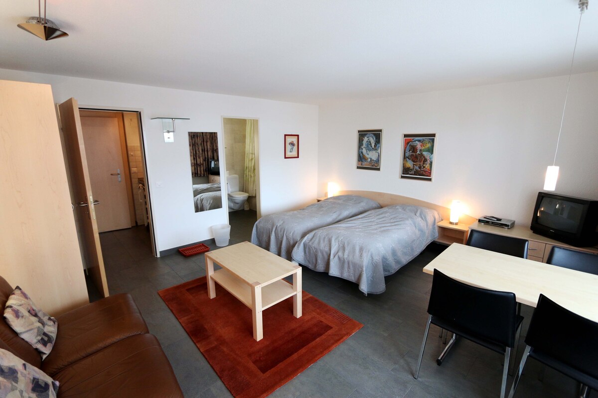 рд╣рдорд╛рд░рд╛ рдкреБрдирд░реНрдирд┐рд░реНрдорд┐рдд рд╕реНрдЯреВрдбрд┐рдпреЛ рдХреЗрдВрджреНрд░реАрдп рд░реВрдк рд╕реЗ рд╕реНрдерд┐рдд рд╣реИ, рдЬрд╝рд░рдореИрдЯ рдЯреНрд░реЗрди рд╕реНрдЯреЗрд╢рди рд╕реЗ 5 -10 рдорд┐рдирдЯ рдХреА рдкреИрджрд▓ рджреВрд░реА рдкрд░ рд╣реИред рдШрд░ рдХреА рд╕реАрдврд╝рд┐рдпреЛрдВ рдкрд░ рдЪрдврд╝рдирд╛ (90 рдХрджрдо) рд╣рдореЗрд╢рд╛ рдЗрд╕рдХреЗ рд▓рд╛рдпрдХ рд╣реИ, рдХреНрдпреЛрдВрдХрд┐ рдЬрдЧрд╣ рдХреЛ рдмрд╣реБрдд рд╕рд╛рд░реА рдЪрдордХ рдФрд░ рдЧрд╛рдВрд╡ рдХреЗ рдЧреЙрд╕ рдЬреИрд╕реЗ рджреГрд╢реНрдп рдХреА рд╡рд┐рд╢реЗрд╖рддрд╛ рд╣реИред рдкреВрд░реА рддрд░рд╣ рд╕реЗ рд╕реБрд╕рдЬреНрдЬрд┐рдд рд░рд╕реЛрдИ рдХреЗ рдЕрд▓рд╛рд╡рд╛, рдЕрдкрд╛рд░реНрдЯрдореЗрдВрдЯ рдПрдХ рд╕реНрдирд╛рди, рдПрдХ рдЖрд░рд╛рдорджрд╛рдпрдХ рдмреИрдардиреЗ рдХреА рдЬрдЧрд╣ рдФрд░ рдПрдХ 1.80рдореАрдЯрд░ рдмрд┐рд╕реНрддрд░ рд╕реЗ рд╕реБрд╕рдЬреНрдЬрд┐рдд рд╣реИред рдРрдкреНрдкрд▓ рдЯреАрд╡реА рдмреЙрдХреНрд╕ рдФрд░ рдореБрдлреНрдд рд╡рд╛рдИ - рдлрд╛рдИ рдХреЗ рд╕рд╛рде рдЯреАрд╡реА рдЙрдкрд▓рдмреНрдз рд╣реИ рдФрд░ рд╕рд╛рде рд╣реА рдПрдХ рд▓реЙрдХ рдХрд░рдиреЗ рдпреЛрдЧреНрдп рд╕реНрдХреА рд░реВрдо рднреА рд╣реИред