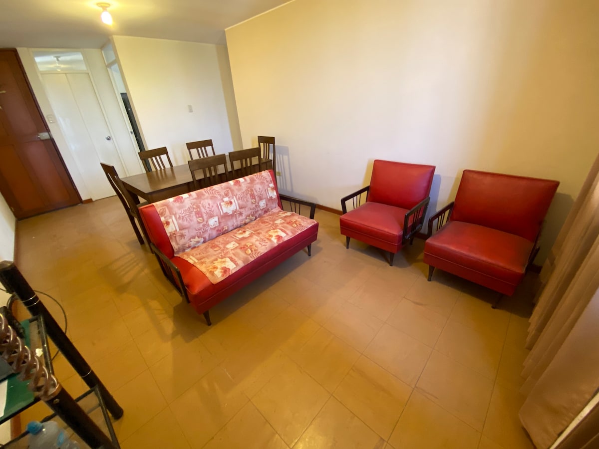 अरेक्विपा में अपने घर में आपका स्वागत है! जोड़ों, व्यवसाय या परिवारों के लिए आदर्श 6 लोगों के लिए हमारे आरामदायक अपार्टमेंट का आनंद लें। यह एक खास और सुरक्षित जगह पर मौजूद है, जहाँ से आपके कमरे से मिस्टी और शहर का शानदार नज़ारा नज़र आ रहा है। इसमें 3 बेडरूम, 2.5 बाथरूम, एक सुसज्जित किचन, एक लिविंग रूम और एक बालकनी है। इसमें वाई - फ़ाई, 24 घंटे, सभी दिन गर्म पानी और पार्किंग की सुविधा शामिल है। ऐतिहासिक केंद्र और हर चीज़ से मिनट: मॉल, स्वास्थ्य, विश्वविद्यालय। हम स्थानीय मदद और सुझाव देते हैं। हम आपसे मिलने के लिए उत्सुक हैं!