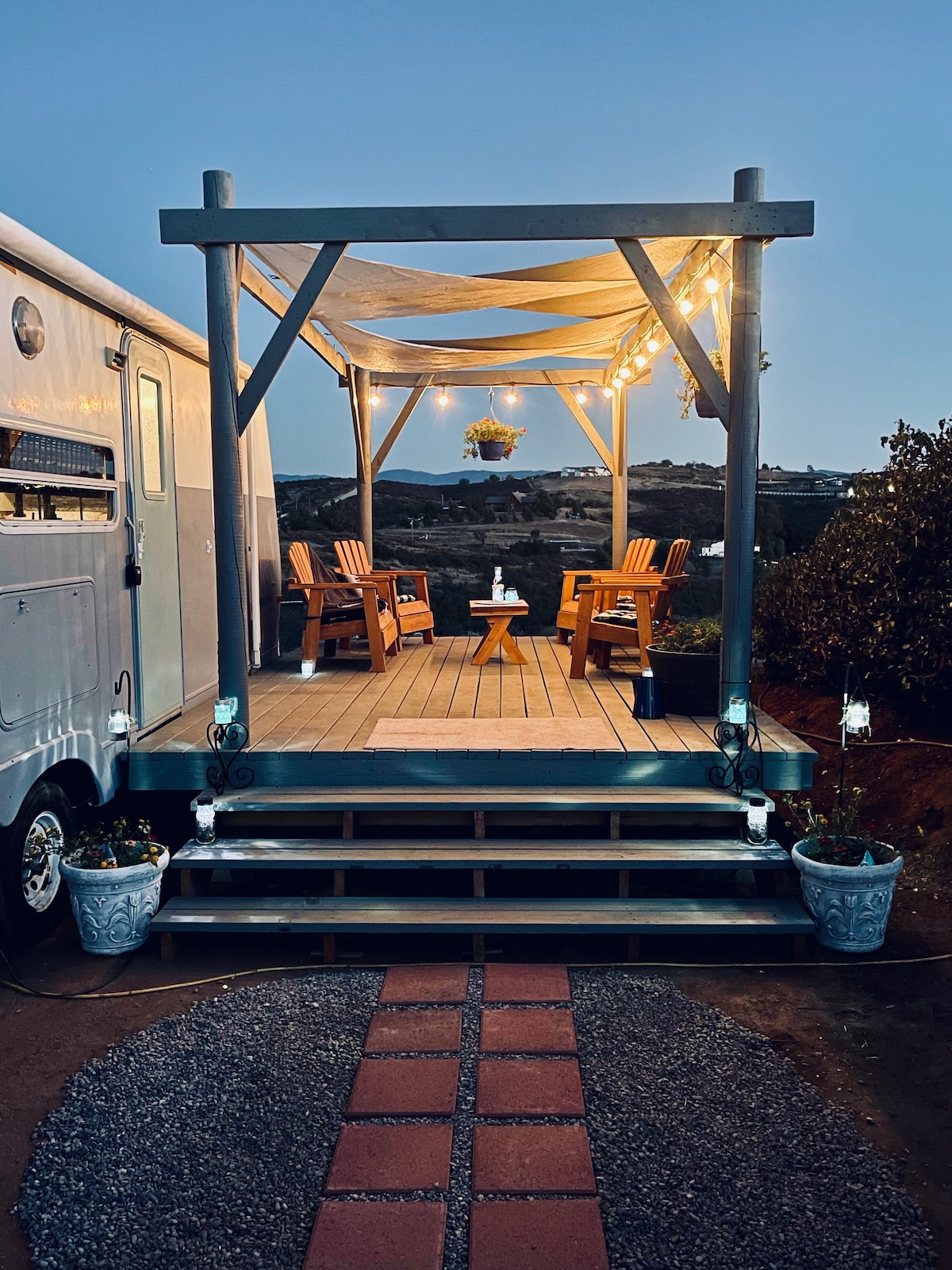 हमारा बिल्कुल नया RV वाइन कंट्री के बीचों - बीच मौजूद है। आप ट्रेलर में कई मनोरम खिड़कियों से अंगूर के बाग देख सकते हैं। आपके पास पिछवाड़े में अपना निजी बाड़ है और हमारे प्यारे निवासियों को पूरे दिन आपसे मिलने का मौका मिलेगा। गर्म हवा के बॉलून को देखकर अपनी सुबह की कॉफी का आनंद लें या लुभावनी सूर्यास्त का आनंद लेते हुए गैस फायर पिट द्वारा एक गिलास वाइन लें। हमारी संपत्ति झील स्किनर के साथ - साथ कई वाइनरी के ठीक बगल में है।