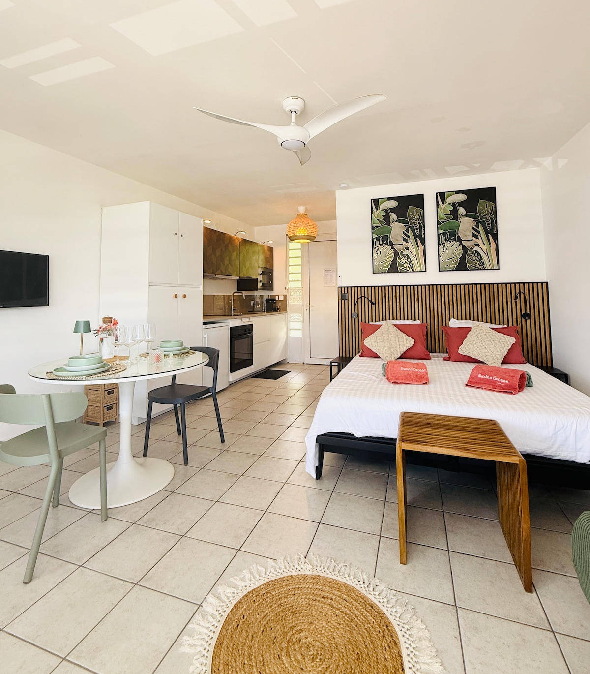 Welcome to your vacation studio, in the heart of a small leafy property just a few steps away from Pointe Marin beach. Freshly refurbished with a natural ambiance, this apartment is perfect for travelers in search of disconnection. For total independence, it has a fully equipped kitchen and a washing machine. Finally, its wooden terrace is ideal for meals to birdsong or to enjoy a cocktail after an exhausting day at the beach.