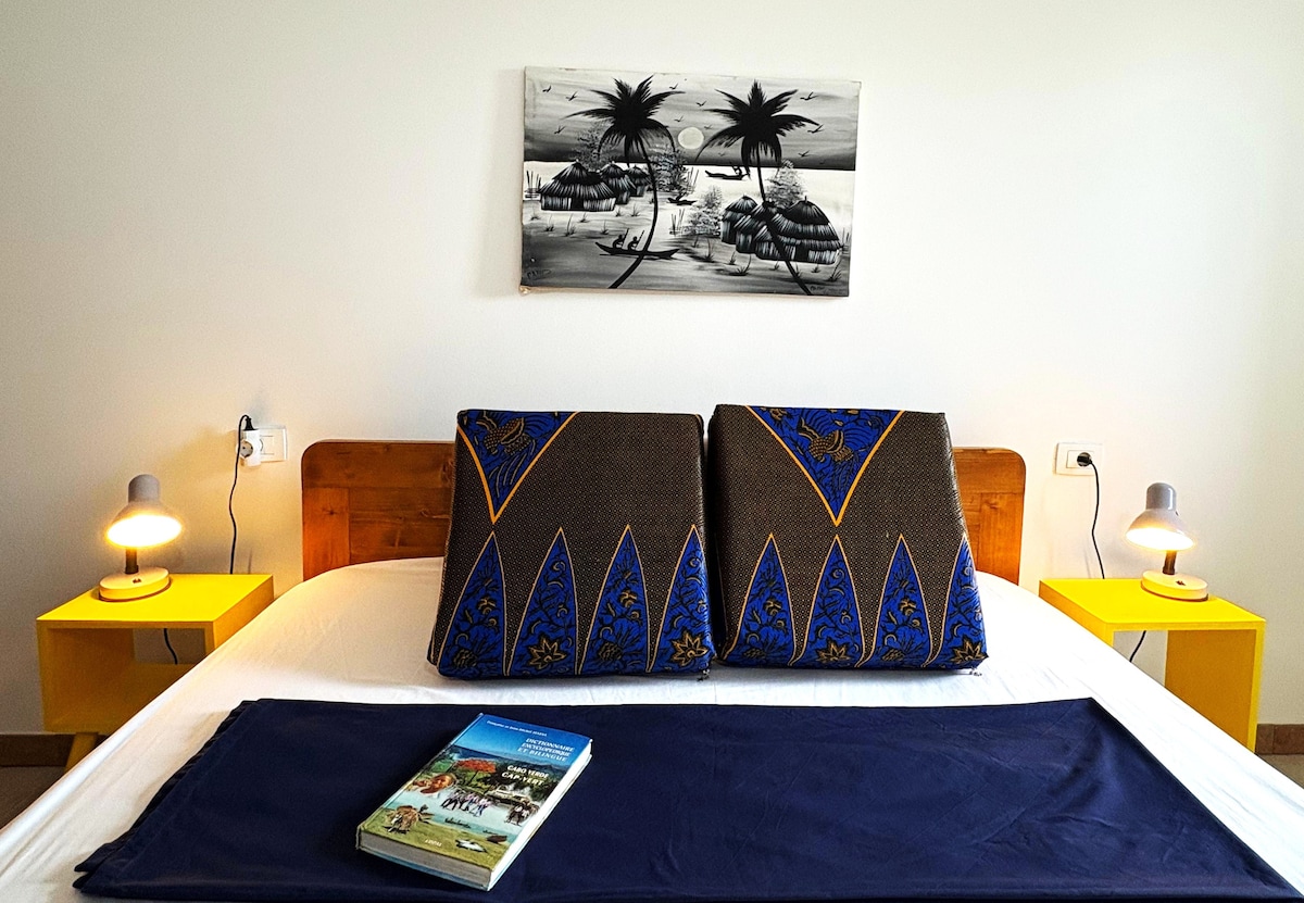 Feel welcome to come and enjoy the endless summer in my penthouse in the heart of Santa Maria. 7 seconds to beach, 1 min to center, top breakfast place in Sal (Capefruit) next-door I'm a native Capeverdian, excited to help you get the most out of your holiday. Happy to help making your holiday memorable Place2be for outgoing (kite)surfers, lovebirds, friends... Private bedroom with bathroom and Shared rooftop area! New double bed that can split into 2 singles. Hope to meet you soon!