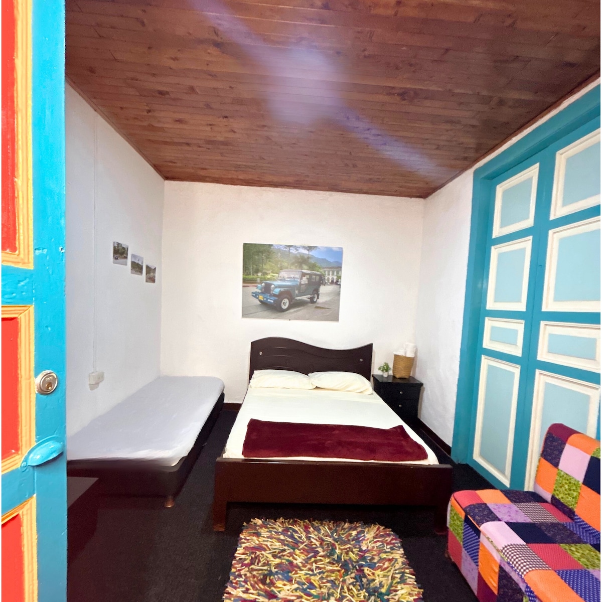 encuentra en nuestra habitacion de hotel toda la comodidad y tranquilidad Además, estarás a pocos pasos de los pintorescos paisajes del Valle del Cocora y del encanto colonial de Salento. Explora sus calles empedradas, disfruta de la deliciosa gastronomía local y sumérgete en la calidez de su gente. Ya sea que busques una escapada romántica o una aventura en solitario, nuestra habitación es el punto de partida ideal para tu experiencia en Salento. estamos a 150 mts del centro.
