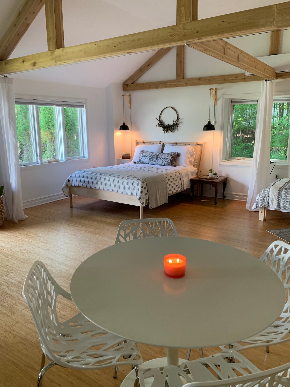 एक छोटे से किचन के साथ आधुनिक लाइट से भरा गैराज रूपांतरण, पीछे की ओर एक खुला डेक के साथ पूरा बाथरूम। 3 एकड़ में पक्षियों, ऊँचे पेड़ों और एक छोटी - सी खाड़ी के साथ एक खूबसूरत शांत जगह। बेडरूम में एक आरामदायक क्वीन बेड है, जिसमें एक छोटी सी सीढ़ी है और बच्चों के लिए एक छोटा - सा स्लीपिंग लॉफ़्ट है। खुले किचन लिविंग रूम एरिया में एक पुल आउट सोफ़ा भी है, जिसके पीछे एक डेक है। यह हमारे घर से जुड़ा एक छोटा - सा अपार्टमेंट है, जिसे देखभाल और निजता को ध्यान में रखते हुए डिज़ाइन किया गया है।