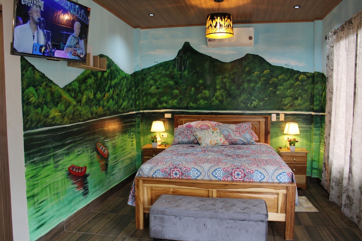 Relájate con toda la familia o tu pareja en esta casa-cabaña donde la tranquilidad se respira. Ubicado en La Laguna de San Carlos, frente al cerro picacho y cerro La Laguna. Fácil acceso, a 1 hora y 30 minutos de la Ciudad de Panamá, desde nuestra propiedad estarás a 15 minutos del Lago De La Laguna. Con amenidades y facilidades como: acceso privado, baño completo, cocina completa, amplio patio para camping, hermosas vistas, Wiffi, una cama Queen y un colchón inflable por si lo requiere.