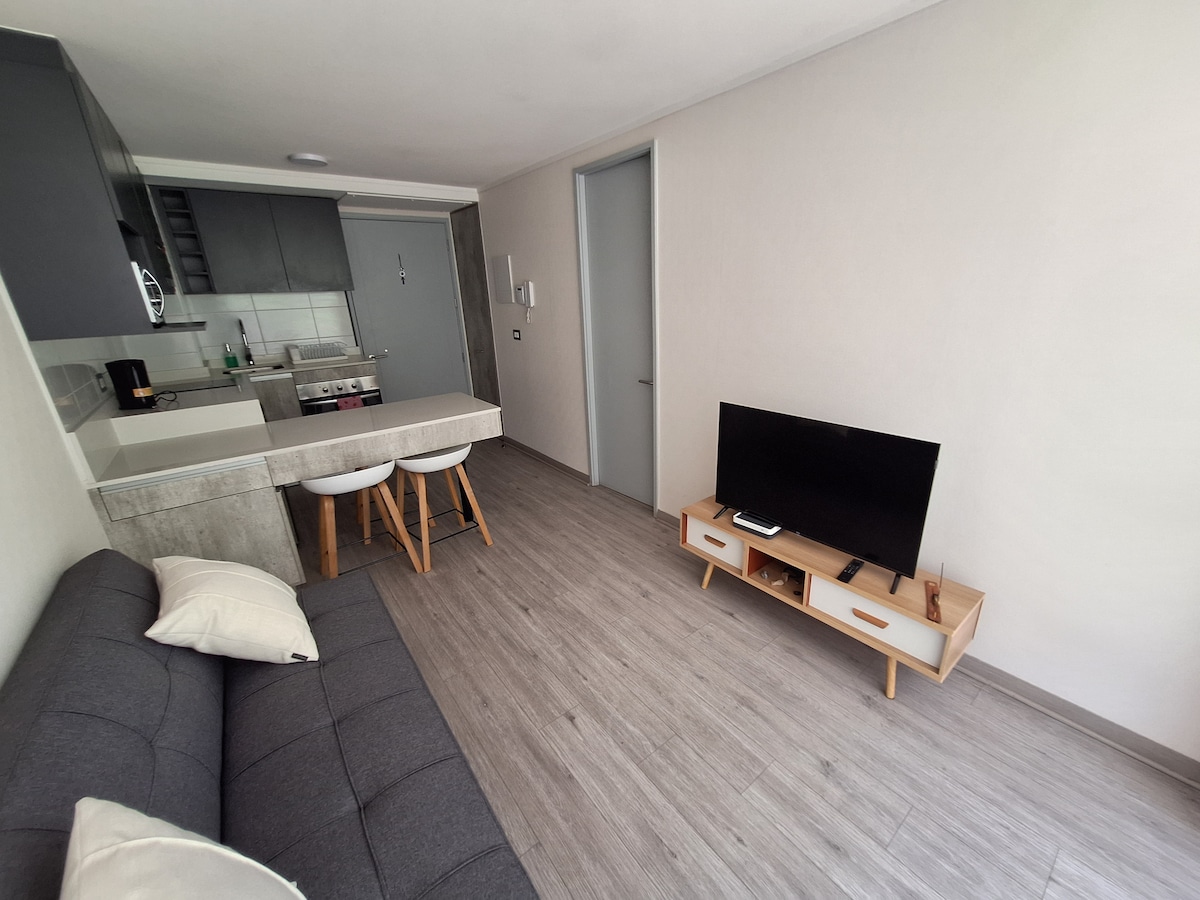 Movistar Arena, Parque O’Higgins, Fantasilandia से 10 से 15 मिनट की पैदल दूरी पर विशेष कोंडोमिनियम में, जोड़ों, परिवारों या काम के लिए बढ़िया, 24 घंटे, सभी दिन सुरक्षा हाई स्पीड वाईफ़ाई, स्ट्रीमिंग टीवी, आस - पास की मेट्रो और ज़रूरी सुविधाएँ डिजिटल लॉक के ज़रिए 🔐ऐक्सेस करने के लिए सुरक्षित, अच्छी तरह से जुड़ी जगह और खूबसूरत जगहें हम प्री - एंट्री की बुनियादी जानकारी माँगते हैं (पूरी गोपनीयता) पार्किंग शामिल नहीं है, लेकिन हम इसे मैनेज करने में मदद करते हैं या आप सामने वाले हिस्से का इस्तेमाल कर सकते हैं (दाईं ओर, मुफ़्त)