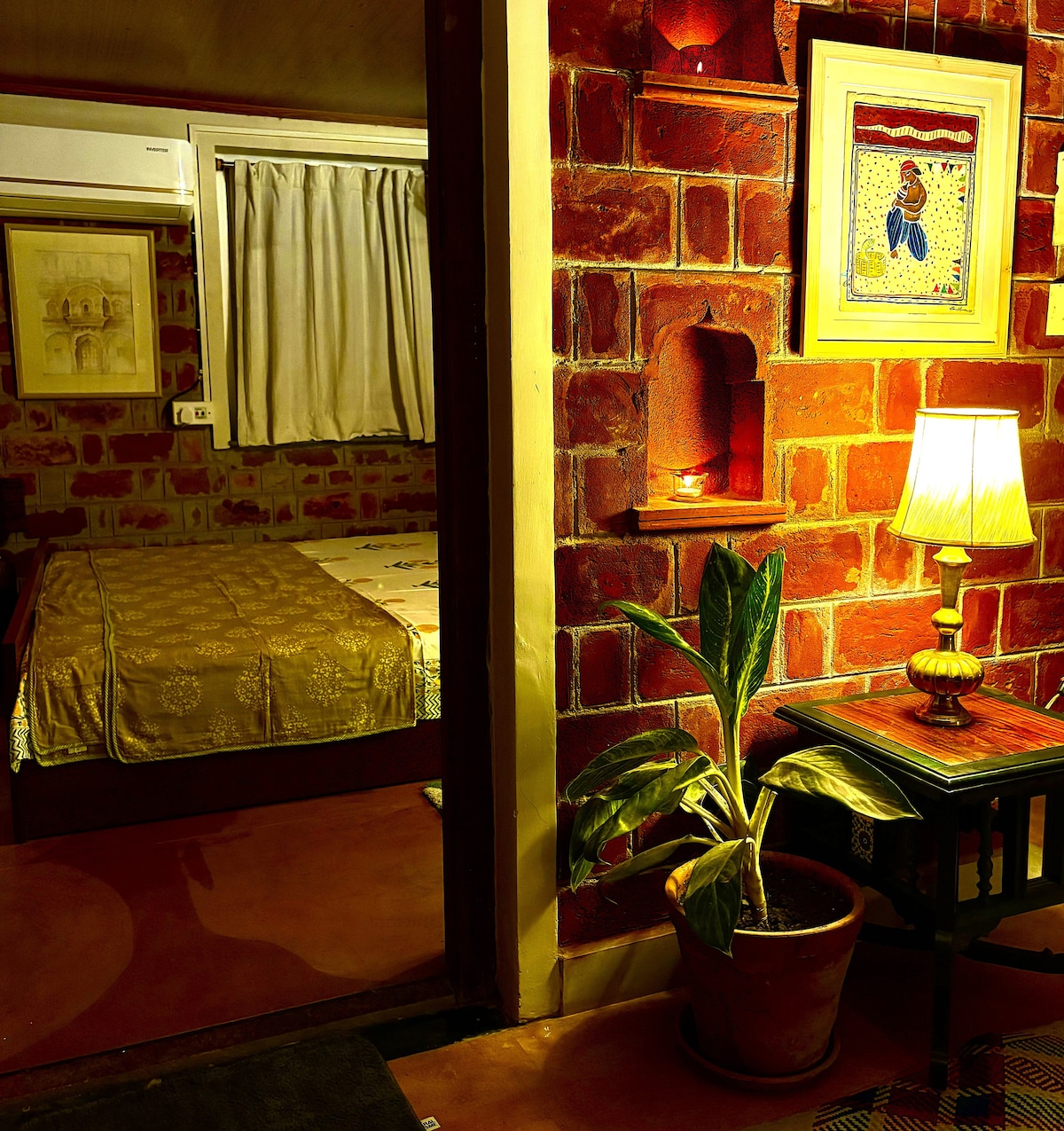 Srirangam offers five well-appointed ensuite bedrooms - Aadi, Ananta, Adwaita, Anagha and Aaditya. The sixth bedroom – Aananda (on the ground floor) is set aside for the host family, and may be let out to guests with mobility constraints. This ensuite bedroom named Ananta, probably the most beautiful bedroom at Srirangam, looks over the little waterbody and amphitheatre from the first floor, at the rear.
