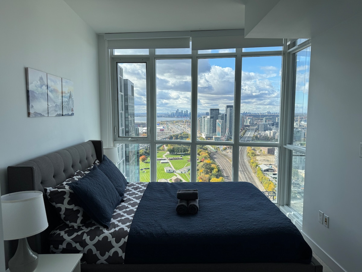 Brand new 1 Bedroom + Den fully furnished executive private condo in the heart of downtown Toronto with private CN Tower & Lake Ontario view. Perfect for business trips, couples & solo travelers. Complimentary: Free welcome bottle of wine. Free Coffee & Tea High speed internet - 1 Gbps fibre. Full kitchen Ensuite washer & dryer with all soaps & detergents. 2 minute walk to: Scotiabank Arena Union Station Rogers Center CN Tower Ripley's Aquarium Waterfront King St. West Financial District