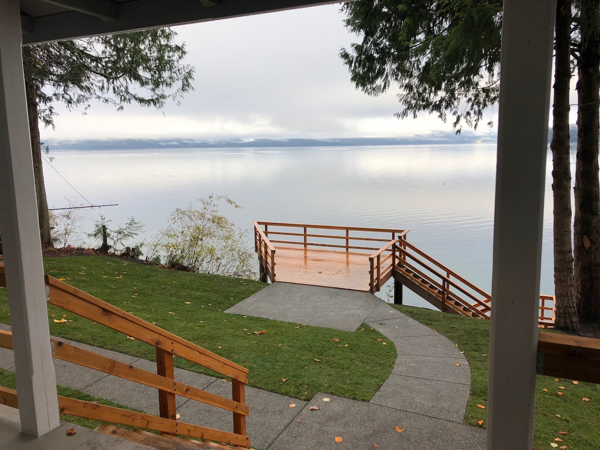 हुड नहर पर स्थित एक तरह का कॉटेज जिसमें अद्भुत पर्वत और पानी के दृश्य हैं! कार, नाव या सीप्लेन से आओ! पहाड़ों और वन्यजीवों में ले जाते हुए डेक पर बैठकर समुद्र तट पर लहरों की गोद सुनने के लिए एक आरामदायक यात्रा बिताएं। घर निजी समुद्र तट के 200' के साथ एक बड़े, जंगली पार्सल पर है। रात के खाने के बाद, पोर्च पर एक रॉकिंग कुर्सी पर बैठें और पहाड़ों पर सूरज सेट देखें। उठो और हाथ से निर्मित चिमनी में आग से अपनी कॉफी का आनंद लें। लेवल 2 J1772 चार्जर।