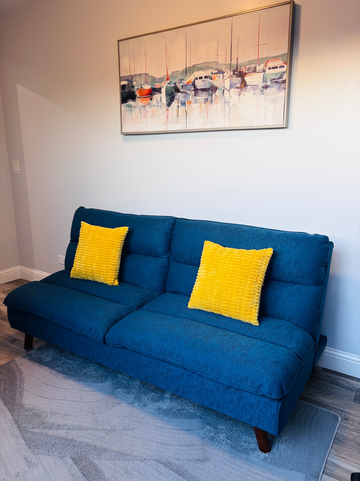 निजी प्रवेश द्वार और बाथरूम के साथ एक आरामदायक जगह। एक बड़ी तस्वीर खिड़की के माध्यम से उच्च छत और बगीचे के दृश्य के साथ हल्का और हवादार। क्वीन साइज़ बेड, सीलिंग फैन, गैस हीटर\फ़ायरप्लेस, 35" फ़्लैट स्क्रीन स्विवेल टीवी, केउरिग कॉफ़ी मेकर और एक बड़ा रोल - इन शॉवर। मिनी फ्रिज, माइक्रोवेव, विशाल आँगन और बाड़ वाले यार्ड दरवाजे के ठीक बाहर। कोई रसोई नहीं है। कुत्तों का स्वागत पहले से मंज़ूरी के साथ किया जाता है। हर बुकिंग के लिए $ 25.00 का डॉग शुल्क। अत्यधिक एलर्जी के कारण बिल्लियों की अनुमति नहीं है।