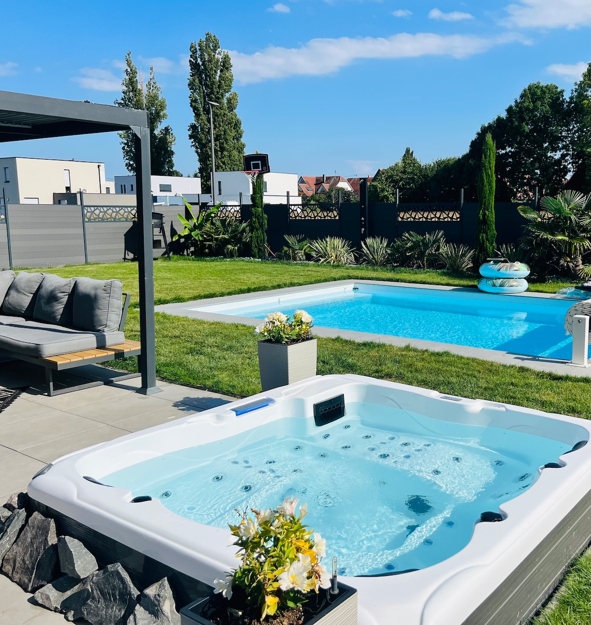 🌸 निजी कोठी – 230 m² एक निजी स्पा और सॉना के साथ इस सुरुचिपूर्ण विला में एक असाधारण ठहरने का आनंद लें। परिवारों या दोस्तों के समूहों के लिए बिल्कुल सही, इसमें अधिकतम 12 मेहमान ठहर सकते हैं। 💦 आराम और मनोरंजन प्राइवेट स्पा और सॉना फ़ूज़बॉल टेबल टेनिस आर्केड मशीन 🌿 आदर्श लोकेशन स्ट्रासबर्ग से बस 5 मिनट की दूरी पर, इस क्षेत्र के हाइलाइट के करीब रहने के दौरान एक शांतिपूर्ण सेटिंग का आनंद लें — जो आराम करने और अलसैस की खोज करने के लिए एकदम सही है।
