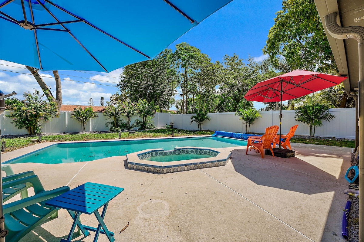 🍍समुद्र तट के लिए सुंदर घर गर्म पूल 5 मिनट। 8 ppl🍍