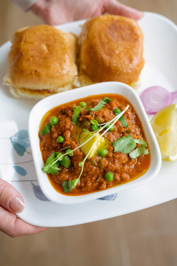 मसालेदार सब्जियों से बना एक लोकप्रिय भारतीय स्ट्रीट फ़ूड डिश, जिसे बटर सॉफ़्ट ब्रेड रोल (पाव) के साथ परोसा जाता है। आलू, मटर, फूलगोभी और घंटी मिर्च जैसी मैश की हुई सब्जियों से बना, टमाटर - प्याज की ग्रेवी में पकाया जाता है और मसालों के साथ अनुभवी होता है