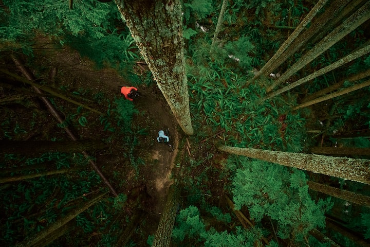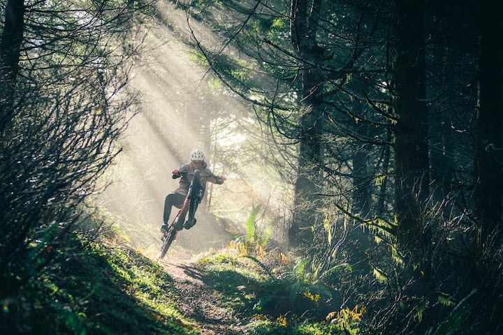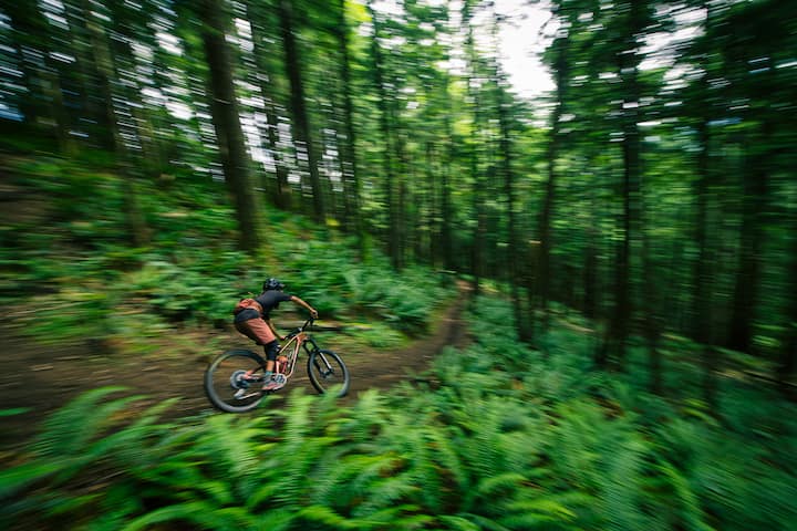 गैलब्रेथ या चकानट ट्रेल्स पर बाइक चलाते समय एक्शन शॉट लें।