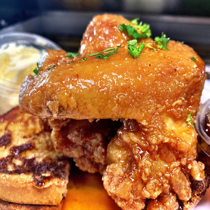 दिन की शुरुआत एक स्वादिष्ट भोजन के साथ करें जिसमें झींगा और ग्रिट, फ़्रेंच टोस्ट और तला हुआ चिकन जैसे व्यंजन हों।