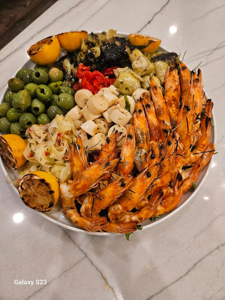 नीले केकड़े, पत्थर के केकड़े, खाड़ी झींगा, लॉबस्टर, क्लैम, एंडोइल, मकई, आलू और आटिचोक की सुविधा वाला एक गल्फ कोस्ट दावत, जो सभी बोल्ड दक्षिणी मसालों से भरा हुआ है।