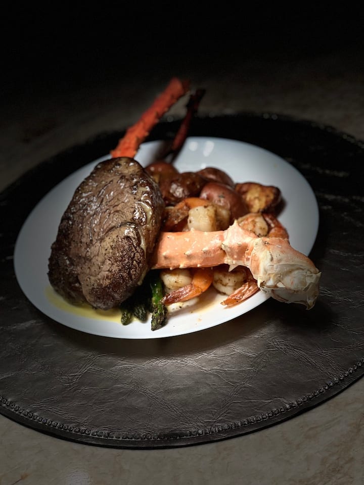 आरामदायक रात के लिए डिज़ाइन किया गया 4 - कोर्स वाला मेन्यू। सुविचारित तैयारी के साथ सुंदरता और आराम को मिलाता है।