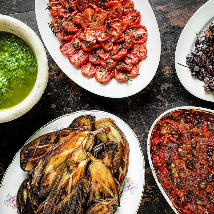 सीज़न के इनाम का जश्न मनाते हुए एक रंगीन शाकाहारी दावत, जो आग से भुनी हुई सब्जियों, हेरलूम अनाज, जीवंत सलाद और जड़ी - बूटियों से भरपूर सॉस के बारे में सोचता है। अल फ़्रेस्को की सेवा की, यह एक भावपूर्ण, पौधों से भरा अनुभव है, जो ताज़गी और स्वाद से भरपूर है।