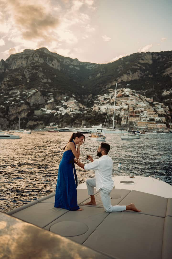 अमाल्फ़ी या सोरेंटो तट के उत्तेजक वातावरण में शादी के प्रस्ताव के पेशेवर शॉट।