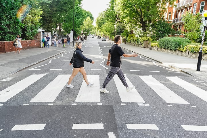 एबी रोड के इर्द - गिर्द पूरी तरह से क्रिएटिव शूट करें, न कि सिर्फ़ क्रॉसिंग (एबी रोड स्टूडियो का बाहरी हिस्सा, स्ट्रीट शॉट, स्पष्ट पल)