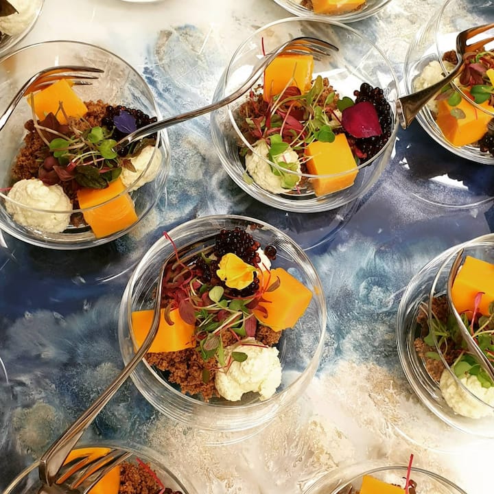 अपने स्वाद को 4 कोर्स के असाधारण भोजन में शामिल करें, जहाँ आपकी पसंद के मेनू से कोई स्वाद नहीं छोड़ा जाता है। प्लेटेड फ़ाइन डाइनिंग से लेकर शेयरिंग और फ़ाइन डाइनिंग तक, आपकी डिनर पार्टियाँ आपके मेहमानों और खुद को आने वाले कई दिनों तक याद रहेंगी। मेन्यू को आपकी और आपके मेहमानों की ज़रूरतों के हिसाब से पूरी तरह कस्टमाइज़ किया जा सकता है और हर पैलेट का ध्यान रखा जाएगा। कृपया अपनी शर्तों के साथ संपर्क करें और आपके स्वाद मुझे एक साथ लाने के लिए चुनने के लिए धन्यवाद देंगे।
