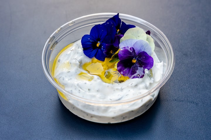 फ़ेटा चीज़केक, खुबानी का जैम और लैवेंडर