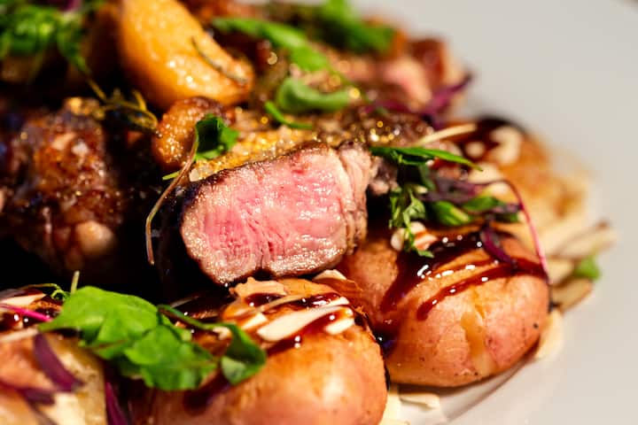लक्ज़री स्टेकहाउस के अंदाज़ में डाइनिंग का अनुभव, अब आपके घर पर। मेहमानों को क्लासिक एलिवेटेड स्वाद, प्रीमियम कट, रिच सॉस और सुरुचिपूर्ण फ़ाइन डाइनिंग प्लेटिंग का आनंद मिलता है। सालगिरह, समारोह और ऐसे किसी भी व्यक्ति के लिए बिलकुल सही, जो घर से बाहर निकले बिना हाई-एंड "रेस्टोरेंट नाइट" चाहता है।