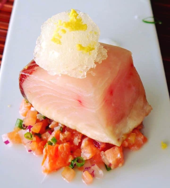 - ऐपेटाइज़र: हवाईयन स्टाइल टूना पोक, स्कैलियन, सुशी राइस, सैफ़्रन ऐओली, खीरा।