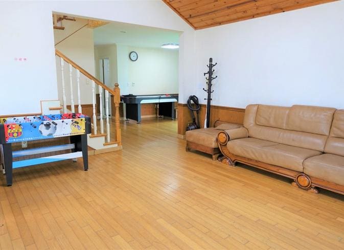 рдирд╛рдХ рдХреЗ рд╕рд╛рдордиреЗ рд░рд╣реЗрдВ рд╕рдмрд╕реЗ рдЬрд╝рд░реВрд░реА рдмрд╛рдд, рд╕рд╛рдлрд╝ - рд╕рдлрд╝рд╛рдИред рдмрд┐рд╕реНрддрд░, рд▓реЙрдиреНрдбреНрд░реА рдХрд╛ рд░реЛрдЬрд╝рд╛рдирд╛ рдмрджрд▓рд╛рд╡ рдкреВрд░реЗ рдЖрд╡рд╛рд╕ рдХреЛ рд╕рд╛рдлрд╝ - рд╕реБрдерд░рд╛ рд░рдЦрдирд╛! рдЗрд╕рдХреЗ рдЕрд▓рд╛рд╡рд╛, рд╣рд░ рджрд┐рди рдЙрд╕ рд╕реНрдкрд╖реНрдЯ рдЪреАрдЬрд╝ рдХрд╛ рдЕрднреНрдпрд╛рд╕ рдХрд░рдирд╛! рдпрд╣ рдЖрдкрдХреЗ рд╕рд╛рдордиреЗ рдард╣рд░рдиреЗ рдХрд╛ рд╡рд╛рджрд╛ рд╣реИред рдФрд░ рдЕрдЧрд▓реА рдЪреАрдЬрд╝ рдЬреЛ рдЖрдк рдмрдирд╛рдирд╛ рдЪрд╛рд╣рддреЗ рд╣реИрдВ рд╡рд╣ рд╣реИ рдпрд╣ рдПрдХ рдРрд╕реА рдЬрдЧрд╣ рд╣реИ рдЬрд╣рд╛рдБ рдмрдЪреНрдЪреЗ рдФрд░ рдорд╛рддрд╛ - рдкрд┐рддрд╛ рдПрдХ рд╕рд╛рде рдЖрд░рд╛рдо рдХрд░ рд╕рдХрддреЗ рд╣реИрдВред рдШрд░ рдХреЗ рдЕрдВрджрд░ рдПрдХ рд╕рдХреНрд░рд┐рдп рд╕реНрдкреАрдХрд░ рд╕реЗ рд▓реИрд╕ рдПрдХ рдЯреАрд╡реА рд╣реИ рдЖрдк Netflix рдФрд░ Disney + рдХрд╛ рдордЬрд╝рд╛ рд▓реЗ рд╕рдХрддреЗ рд╣реИрдВ рдФрд░ рд╕рд┐рдиреЗрдорд╛ рдХреА рддрд░рд╣ рднреАред рдкрдЧреЛрд░рд╛ рдореЗрдВ, рдЧрд░реНрдо рдкрд╛рдиреА рдХреЗ рд╕рд╛рде рдбрдмрд▓ рдЖрдХрд╛рд░ рдХрд╛ рдмрд╛рдердЯрдм рд╣реИред рдЬрдм рдмрдЪреНрдЪреЗ рдкрд╛рдиреА рдореЗрдВ рдЦреЗрд▓ рд░рд╣реЗ рд╣реЛрдВ, рддреЛ рд╡реЗ рдЕрдкрдиреЗ рдмрдЧрд▓ рдореЗрдВ рдорд╛рддрд╛ - рдкрд┐рддрд╛ рдХреА рдордиреЛрд░рдВрдЬрдХ рдЧрддрд┐рд╡рд┐рдзрд┐рдпрд╛рдБ (рд╢рд╛рдо рдпрд╛ рджреЗрд░ рд░рд╛рдд рдХреЗ рд╕реНрдиреИрдХреНрд╕, рдЖрджрд┐) рднреА рдХрд░ рд╕рдХрддреЗ рд╣реИрдВред рдЗрд╕рдХреЗ рдЕрд▓рд╛рд╡рд╛, рд░рд╛рдд рдХреЗ рдмрдЧреАрдЪреЗ рдХреА рд░реЛрд╢рдиреА рдХреЗ рдиреАрдЪреЗ рдЖрдЧ рдХрд╛ рдЧрдбреНрдврд╛ рдпрд╣ рдПрдХ рдРрд╕реА рдЬрдЧрд╣ рд╣реИ рдЬрд╣рд╛рдБ рдЖрдк рдХреЙрдЯреЗрдЬ рдХреЗ рд╢рд╛рдВрдд рдорд╛рд╣реМрд▓ рдХреЗ рд╕рд╛рде рд░реЛрдЬрд╝рдорд░реНрд░рд╛ рдХреА рдЬрд╝рд┐рдВрджрдЧреА рдХреЗ рддрдирд╛рд╡ рдХреЛ рднреВрд▓ рд╕рдХрддреЗ рд╣реИрдВред рдЗрд╕ рддрд░рд╣, рдЕрдкрдиреЗ рд╕рд╛рдордиреЗ рд░рд╣реЗрдВ рдард╣рд░рдиреЗ рдХреА рдЬрдЧрд╣ рднреА рдордЬрд╝рд╛ рд▓реЗрдиреЗ рдХреЗ рд▓рд┐рдП рдПрдХ рд╢рд╛рдирджрд╛рд░ рдЬрдЧрд╣ рд╣реИред рдЗрд╕рдХреЗ рдЕрд▓рд╛рд╡рд╛, рдпрд╣ Anseong Farmland рд╕реЗ 5 рдорд┐рдирдЯ рдХреА рджреВрд░реА рдкрд░ рд╣реИ, рдореМрд╕рдо рдХреЗ рд╣рд┐рд╕рд╛рдм рд╕реЗ рдХрдИ рддреНрдпреЛрд╣рд╛рд░реЛрдВ рдХрд╛ рдордЬрд╝рд╛ рд▓рд┐рдпрд╛ рдЬрд╛ рд╕рдХрддрд╛ рд╣реИред рдЗрд╕ рд╕реНрдЯрд╛рдЗрд▓рд┐рд╢ рдЬрдЧрд╣ рдореЗрдВ рдкреВрд░реЗ рдкрд░рд┐рд╡рд╛рд░ рдХреЗ рд╕рд╛рде рдордЬрд╝реЗ рдХрд░реЗрдВред