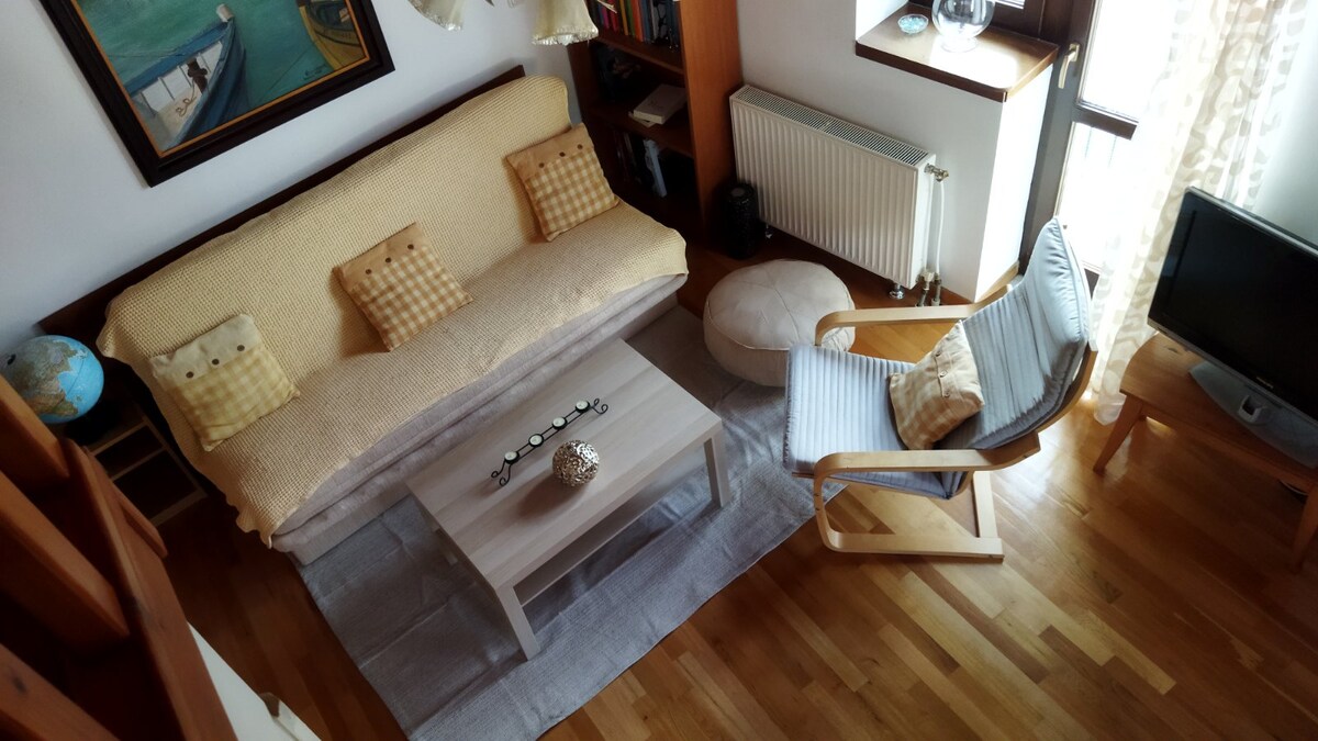 An retro (80s styling) 65 cm3 apartment, with wonderful view of the old town of Kastoria and at Kastorias lake Orestiada. Independent heating, aircondotioned, hot water, renovated bathroom and everything that you need available.
