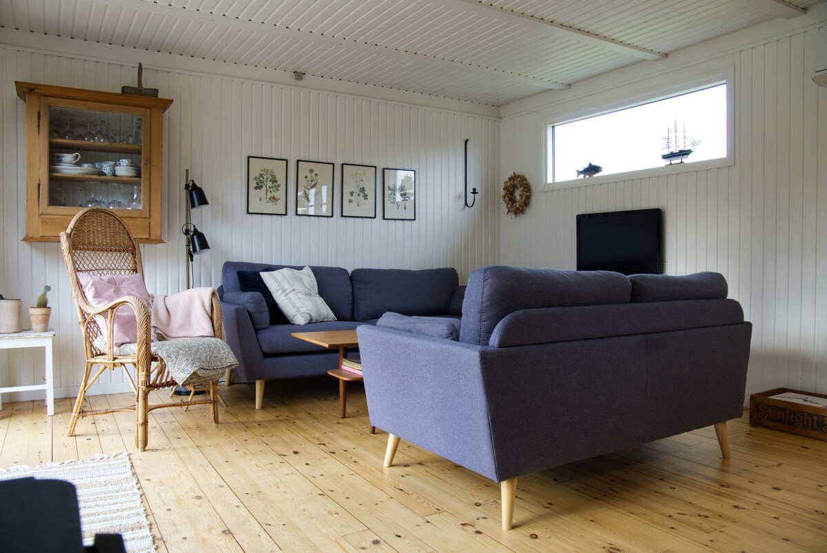 शांत परिवेश में मचान के साथ 90m ² का सुंदर कॉटेज, fjord के करीब और गर्मियों के महीनों के दौरान स्नान जेट्टी के साथ एक सुंदर आम क्षेत्र। घर से पानी का कोई नज़ारा नहीं है। किराए, बिजली, पानी, तौलिए, बेड लिनेन, डिश टॉवेल और तेल, चीनी और मसालों जैसे बुनियादी खाद्य पदार्थों में सब कुछ शामिल है। लकड़ी जलाने वाला स्टोव हीटिंग का मुख्य स्रोत है, बाथरूम में इलेक्ट्रिक हीटिंग है कुछ अंडरफ़्लोर हीटिंग जो बिजली के सस्ते होने पर चालू होती है। बगीचा खेल, खेल और खेलों के लिए जगह के साथ पूरी तरह से अलग - थलग है।