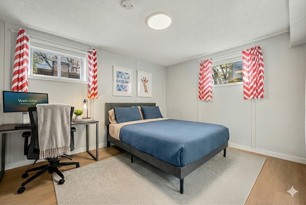 Welcome to our inviting basement suite in Calgary, moments from downtown. The suite has two plush bedrooms, an open-concept living area with a cozy sofa and flat-screen TV, and a fully equipped kitchen. We are a young family living above the suite and are always available to assist you. The location is unbeatable with easy access to downtown and popular attractions, parks, and green spaces. Public transportation options are close by. Relax in your comfortable sanctuary after exploring Calgary.