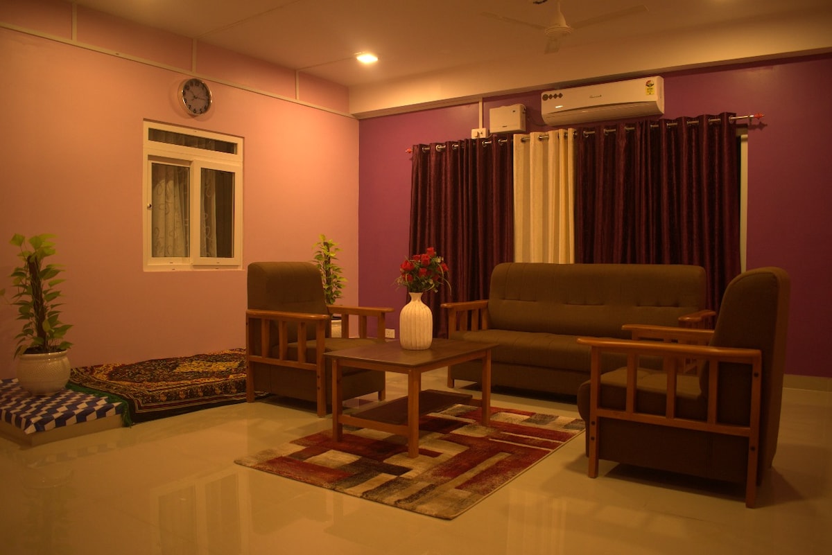 अभि का होमस्टे नवविवाहित जोड़ों के लिए उपयुक्त है जो एक शांत, निजी और प्रदूषण मुक्त वातावरण प्रदान करेगा। एलईडी लाइट और रंगीन रोशनी की मदद से कमरे को ठीक से रोशन किया गया है। यह घर पर ठहरना इमारत की पहली मंजिल पर स्थित है और हवाई अड्डे से 1.2 किमी दूर स्थित है। कमरे में समुद्र का खूबसूरत नज़ारा और बालकनी का ऐक्सेस है। शुद्ध शाकाहारी नाश्ता प्रदान किया जाएगा।