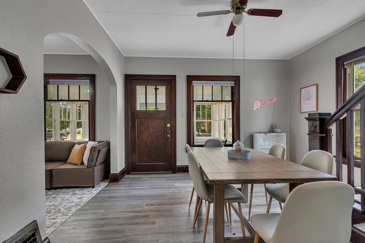 घर से दूर, घर जैसी खूबसूरत जगह। सेंट क्लाउड हॉस्पिटल, Hwy 10 और 15 से मिनट की दूरी पर। सेंट क्लाउड और सेंट क्लाउड स्टेट यूनिवर्सिटी से 5 मिनट की दूरी पर। बड़े बाड़े वाले यार्ड का आनंद लें। मनोरंजन के लिए बैठने की जगह वाला डेक। अंदर 3 पूरे बेडरूम हैं, जिनमें से हर एक में एक क्वीन बेड है। 2 पूरे बाथरूम, 2 लिविंग रूम और सोफ़ा स्लीपर। ऑनसाइट लॉन्ड्री और पार्किंग। यहाँ परिवार के साथ आने वाले मेहमानों की ज़रूरत की हर चीज़ मौजूद है। आपकी जानकारी के लिए बता दें कि घर के सामने के दरवाज़े पर सीढ़ियाँ और वीडियो डोरबेल है।