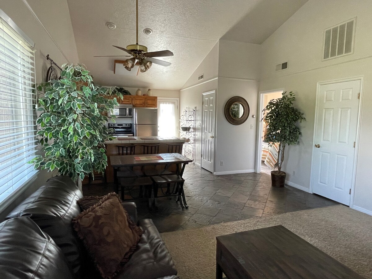 Zion National Park, Sand Hollow Lake, Snow Canyon, Bryce Canyon, Grand Canyon, Lake Powell, Horseshoe Bend, Monument Valley, Arches या Tuacahn के रास्ते में घूमने - फिरने का मज़ा लें। इस आरामदायक जगह में एक क्वीन साइज़ बेड, लिविंग एरिया में क्वीन साइज़ के बेड में एक सोफ़ा और क्वीन साइज़ का ब्लोअप गद्दा है। हाईवे से ठीक दूर और शॉपिंग के बगल में। अपने निजी प्रवेशद्वार ड्राइववे और खुद से चेक इन के साथ इस प्यारे से एक बेडरूम कैसिटा में छिपने का शानदार अनुभव।